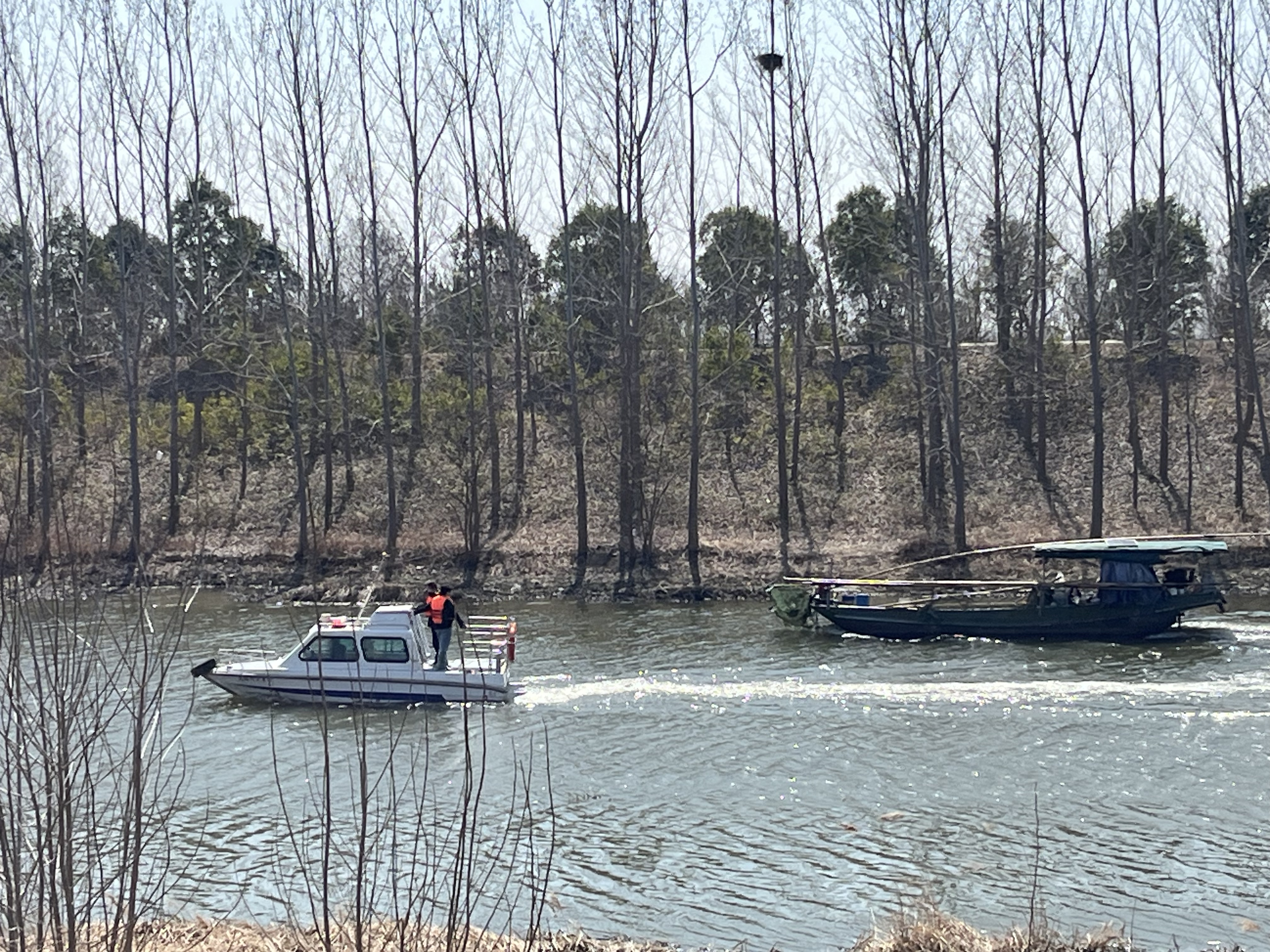 近期,连云港市海洋与渔业综合行政执法支队(下称市海渔支队)接到市民紧急举报电话:“淮沭新河有可疑船只正在捞螺蛳!”螺蛳虽小,却是水域生态链的关键一环,通过滤食净化水质、促进物质循环,堪称“水下清道夫”,清明节前未繁殖的螺蛳更是珍贵。但非法捕捞螺蛳不仅直接导致水体自净能力下降,更严重破坏湖底植被和底栖生物链,是水域生态的“隐形杀手”,威胁鱼类生存环境。接到线索后,市海渔支队立即启动应急响应机制,立即联合海州区农业综合执法大队,兵分两路展开行动,水陆并进开展突击执法行动,一队执法人员驱车沿岸追踪定位,另一队联合海州区农业综合执法大队驾驶执法船艇直扑目标水域,形成“水陆包抄”合围之势。
