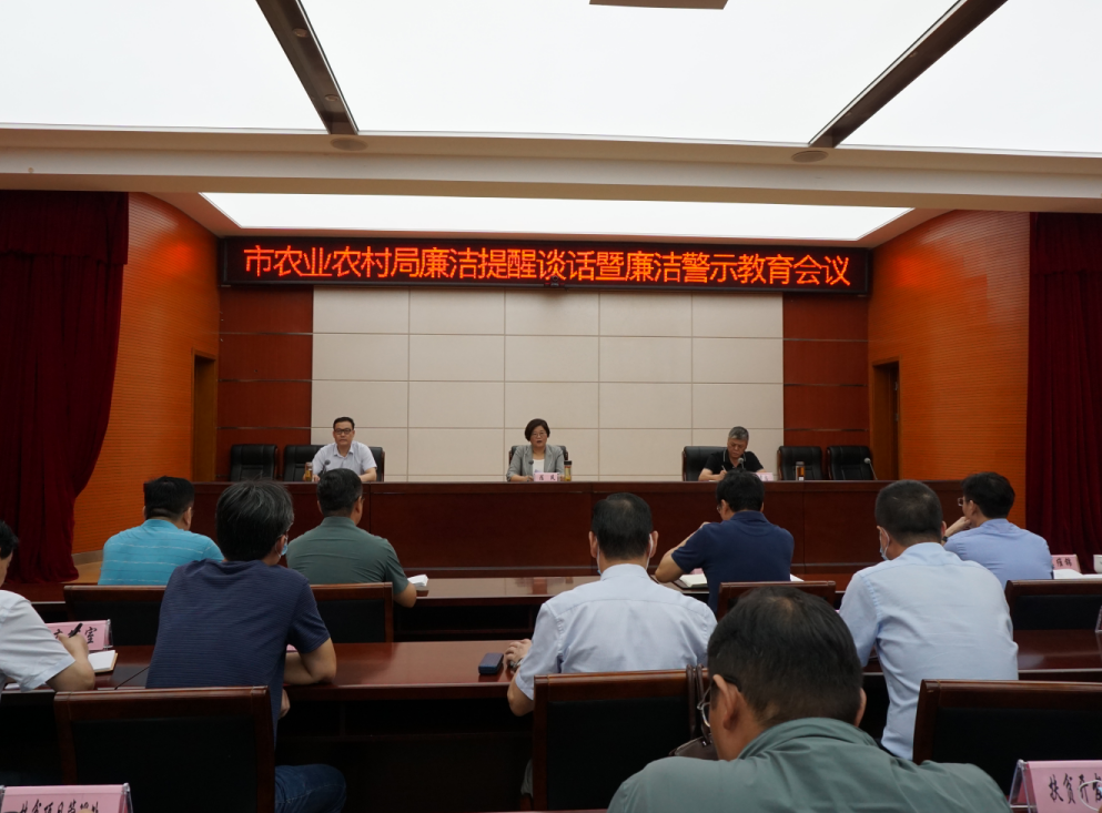 9月6日,市农业农村局召开廉洁提醒谈话暨廉洁警示教育会议。目的在于进一步营造我局风清气正的干事创业氛围,培育锻造忠诚干净担当的“三农”干部队伍,以履职尽责的实际行动迎接党的二十大胜利召开。会议由副局长辛崇兴同志主持。市委农办主任,局党组书记、局长,市乡村振兴局局长陈凤同志对大家进行节前廉洁提醒谈话。